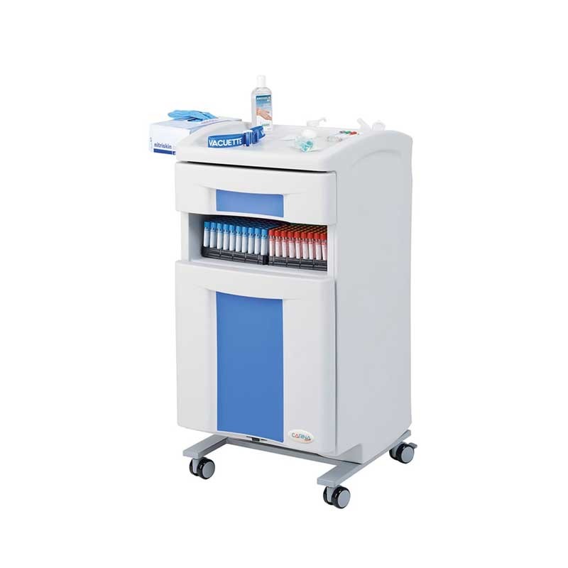 Meuble assistant conçu pour répondre aux besoins des professionnels de santé, alliant ergonomie, mobilité et praticité dans un format compact. Idéal pour les prélèvements, les consultations ou les soins courants, ce mobilier médical robuste et élégant s’intègre parfaitement dans tous les environnements médicaux.