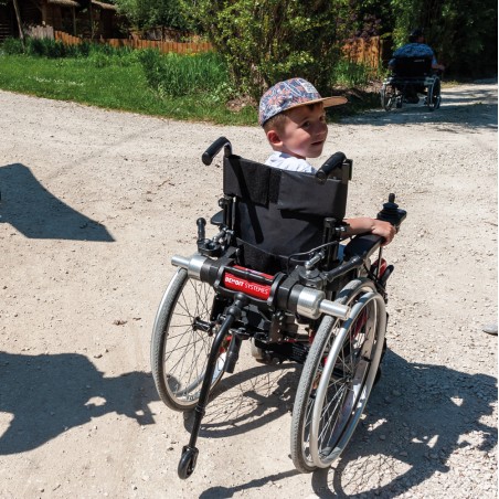 Motorisation légère et amovible fabriquée et installée en France. Elle est destinée à tous les utilisateurs occasionnels ou permanents de fauteuils roulants manuels. Compatible avec la plupart de fauteuils manuels pliants, fixes et confort (consulter le guide de compatibilité). Système d'embrayage ergonomique. Large choix de couleurs. Vitesse max. : 10km/h programmable Autonomie: jusqu'à 20 km (avec la batterie Li-ion 19 Ah). Poids utilisateur jusqu'à 125 kg. Disponible aussi en modèle pour fauteuils enfants (Mini Minotor) et modèle bariatrique (Maxi Minotor) pour les poids usagers supérieur à 125 kg.