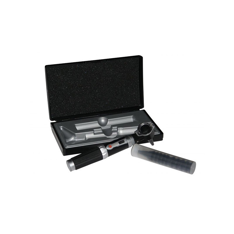 Livré avec un étui rigide, 2 piles alcalines AA LR6, 1 ampoule Led, 4 spéculums 2.5 mm et 4 spéculums 4 mm.