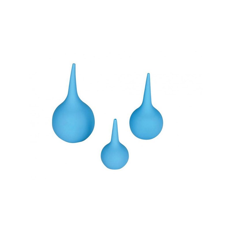 Poire effilée en polyéthylène bleu, disponible en 3 tailles. Référence : 44 510 27.