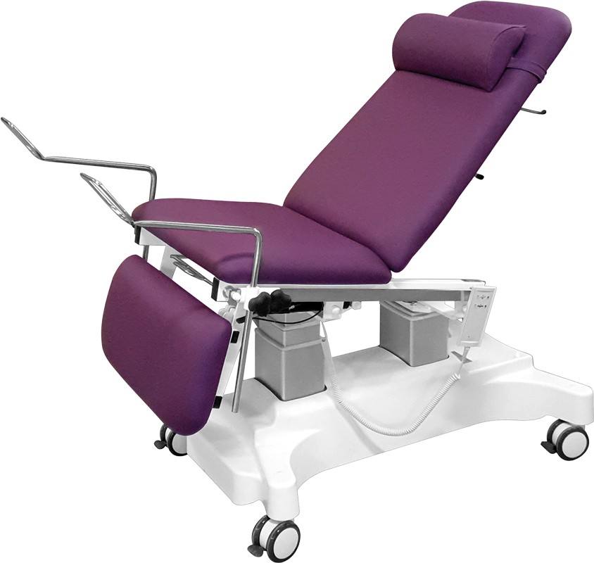 Divan fauteuil avec moteurs permettant l’élévation de l’assise, inclinaison du dossier et position de Trendelenburg.