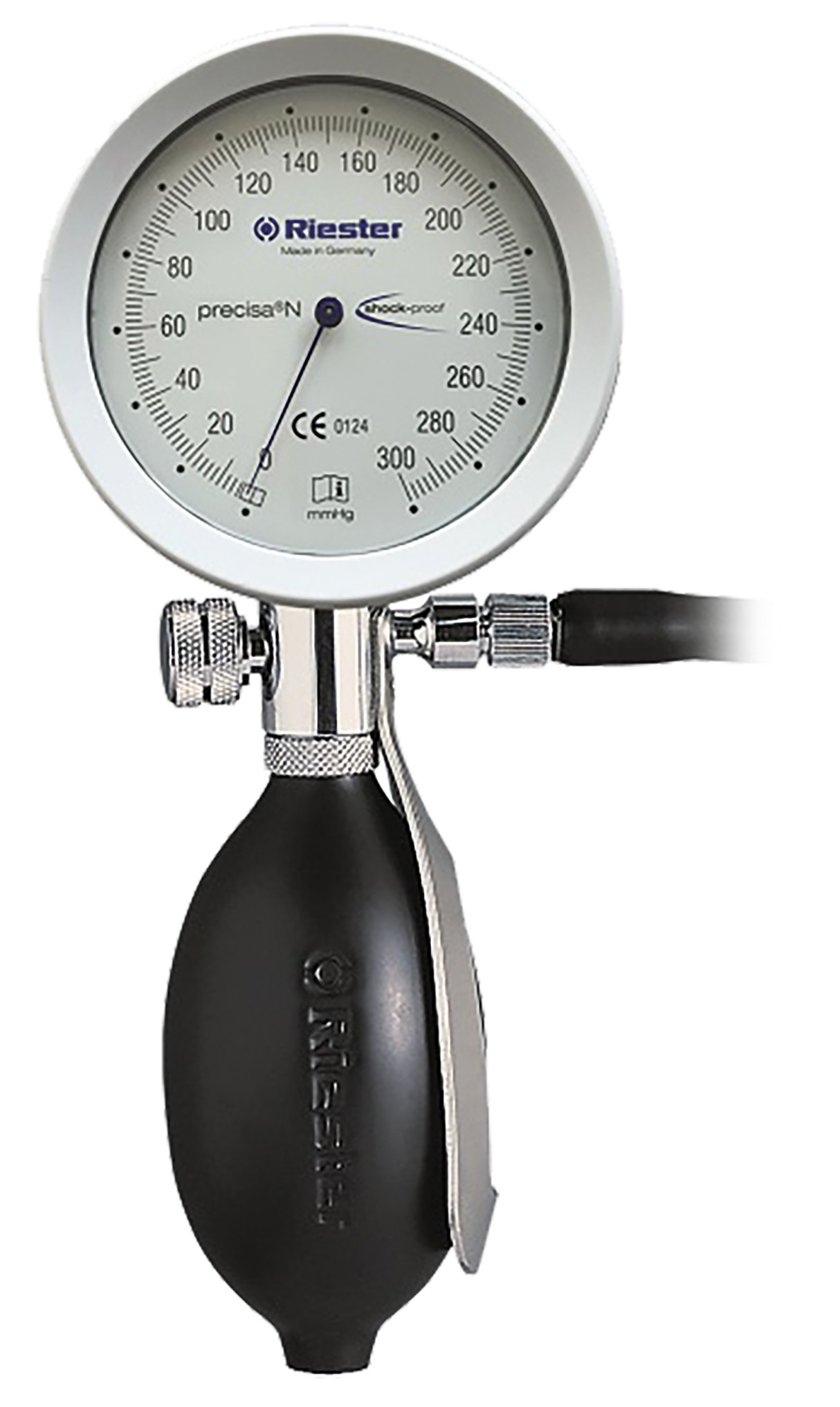 A l’épreuve de chocs jusqu'à une hauteur de 1 m. Valve de décompression de précision, inusable et à réglage précis. Le microfiltre protège la valve de décompression et le système de mesure. Membrane résistante à une surpression allant jusqu’à 600 mmHg. Sans Latex, socle de valve en métal, poignée-cuillère en acier inoxydable, échelle linéaire graduée en aluminium Ø63 mm de 0-300 mmHg, lisibilité optimale et en étui vinyle à fermeture éclair. Conformité avec DIN EN 81060-1:2012-08. Existe aussi en version bras obèse ou enfant. Fabriqué en Allemagne. Garantie : 5 ans.