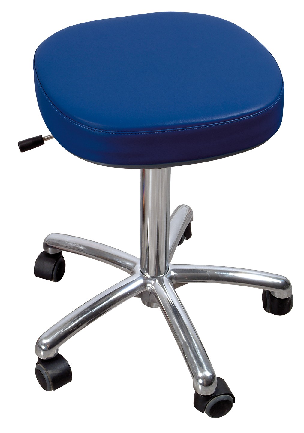 Hauteur variable colonne à gaz 48-67 cm (autres tailles disponibles). Piétement alu poli 5 branches avec roulettes doubles galets Ø5 cm. Assise 40 cm, sellerie antibactérienne et anti-feu M1 de différents coloris. Piétement 50 cm avec commande manuelle au pied en option. Garantie : 2 ans.