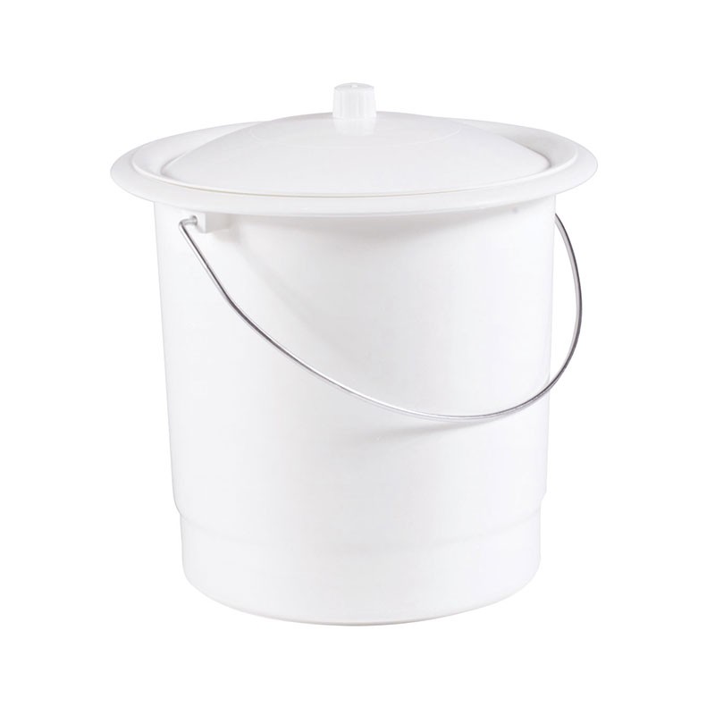 Seau hygiènique en polypropène blanc avec couvercle et anses pour faciliter le transport.