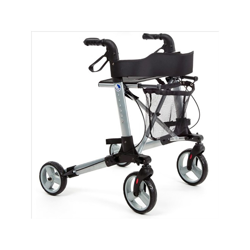 Un rollator 4 roues, pliant, léger en aluminium avec freins est idéal pour les personnes avec une foulée irrégulière mais capable de freiner lorsqu'elles se sentent légèrement déséquilibrées.