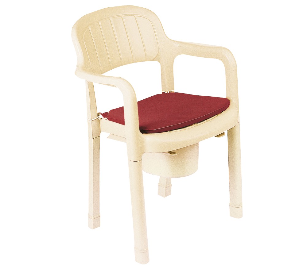 Fauteuil en polypropylène injecté beige. Livré complet avec seau et coussin de renfort antiglisse. Poids max. : 90 kg.